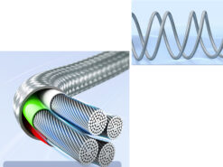 Cabo trançado em nylon, o que proporciona resistência ao desgaste e evita emaranhados, aumentando a durabilidade do cabo.