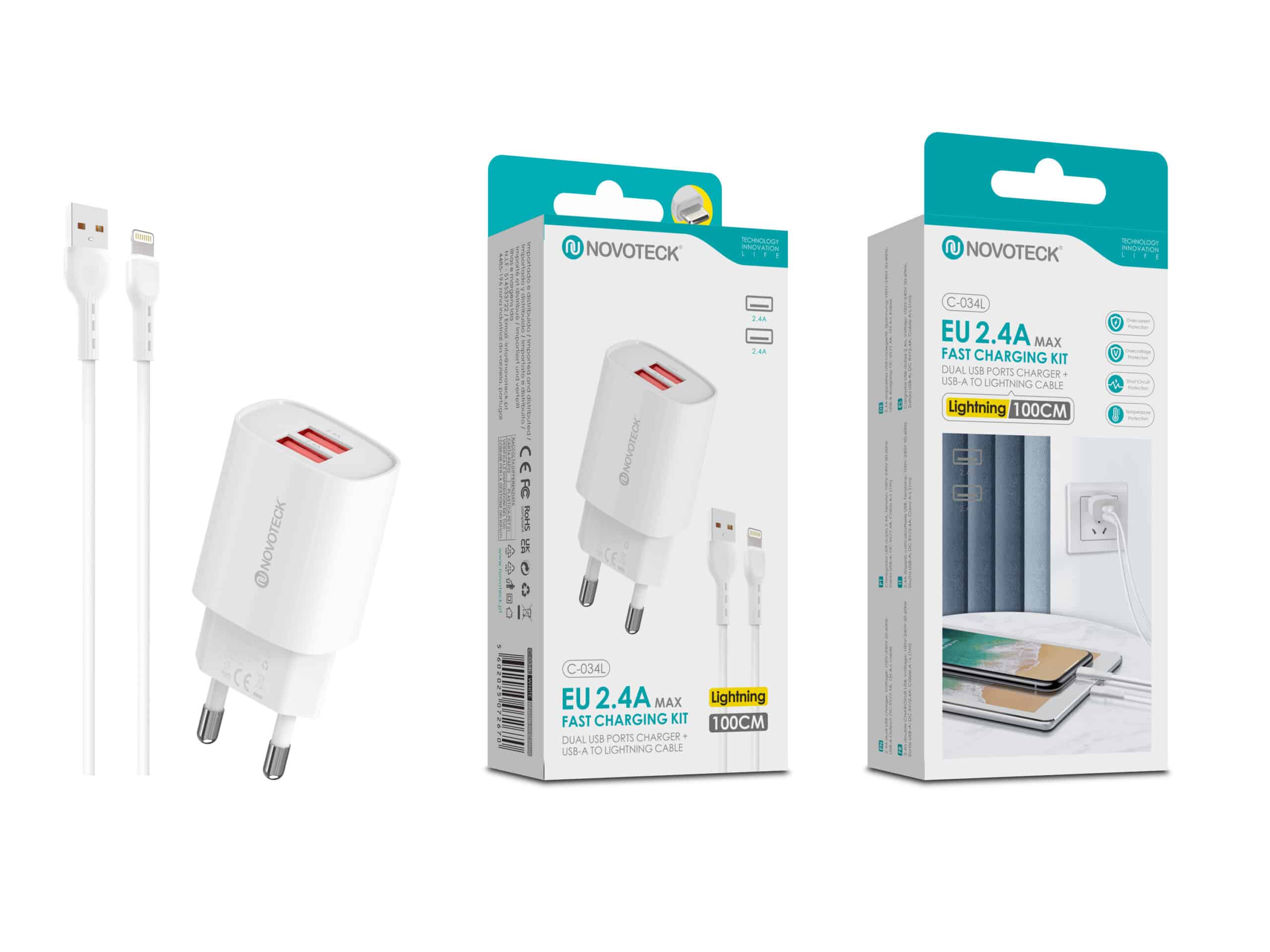 O Kit Carregador Rápido modelo C-034L oferece praticidade e desempenho com duas portas USB e um cabo USB A para Lightning de 100cm incluso. Ideal para dispositivos Apple e outros compatíveis, é a solução perfeita para quem busca carregamento eficiente e seguro.