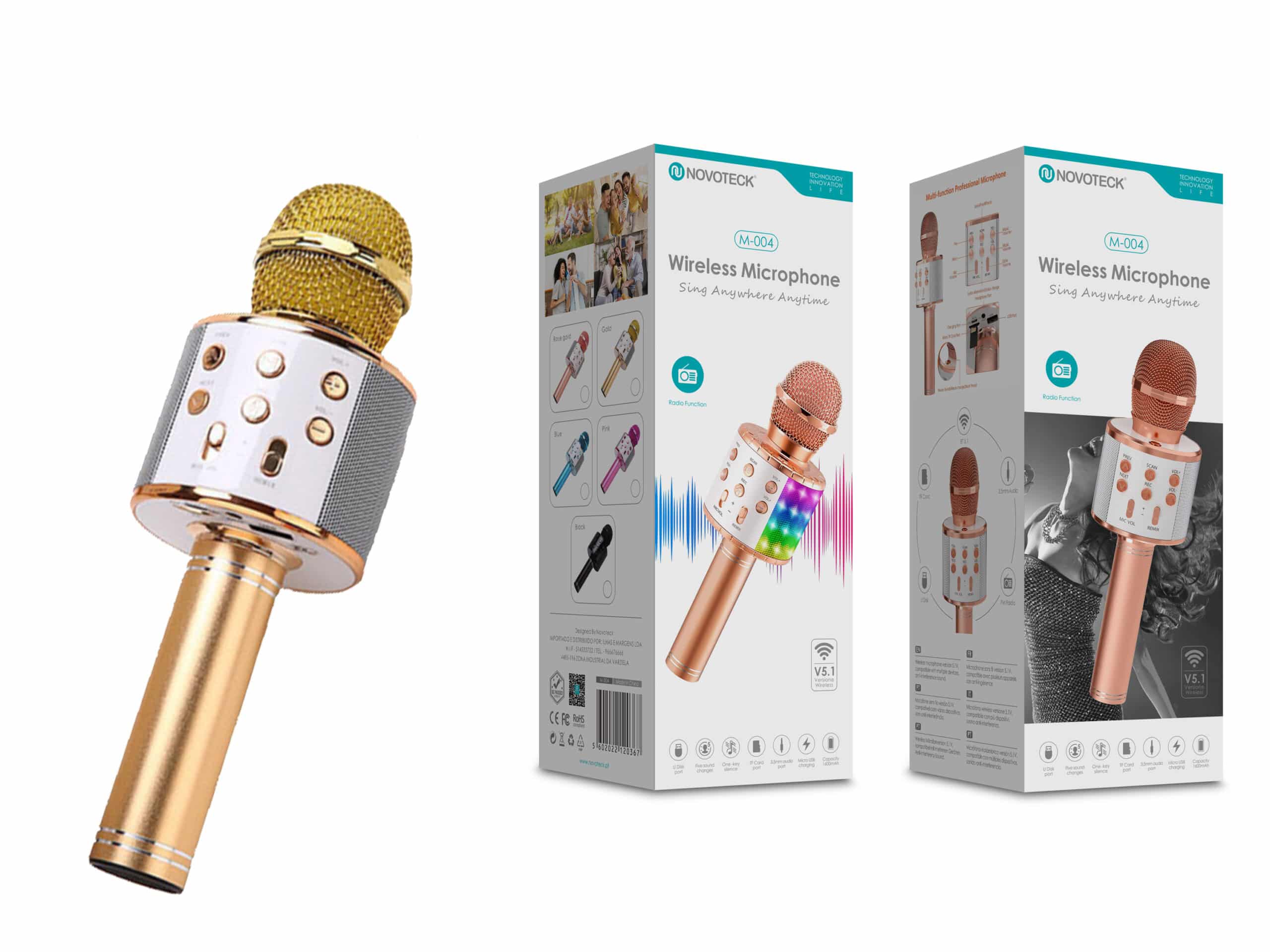 Liberte o cantor que há em si com o Microfone Bluetooth Sem Fios NOVOTECK M-004! Este microfone portátil é ideal para karaokê, festas, apresentações e até mesmo para uso casual no dia a dia. Equipado com tecnologia Bluetooth 5.1, proporciona uma conexão rápida e estável com smartphones, tablets e outros dispositivos compatíveis.