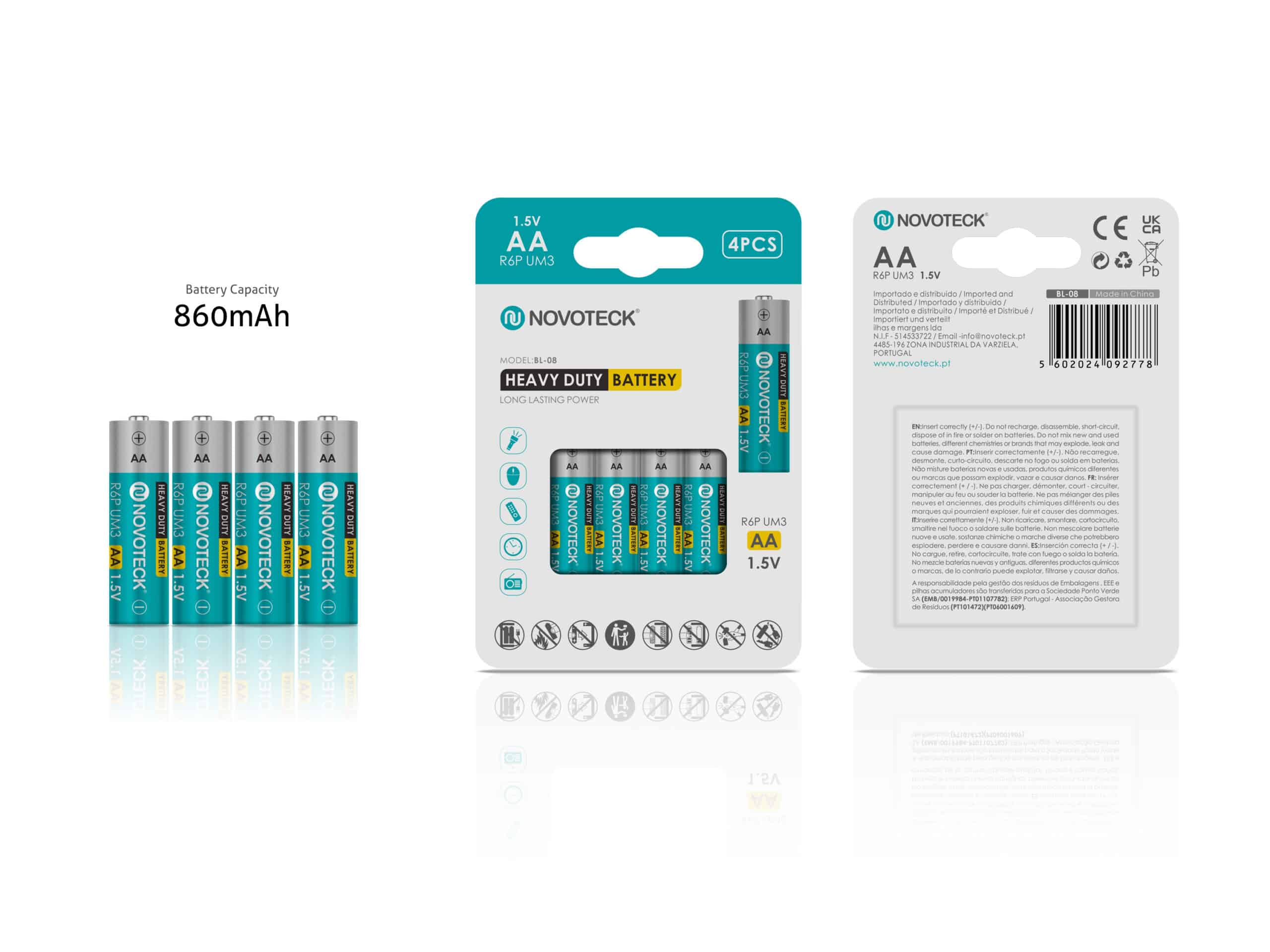 As pilhas AA Heavy Duty NOVOTECK R6P UM3 1,5V são indicadas para utilização apenas em brinquedos compatíveis. Com 860mAh de capacidade e embalagem de 4 unidades, oferecem uma solução económica e prática para equipamentos de baixo consumo energético.