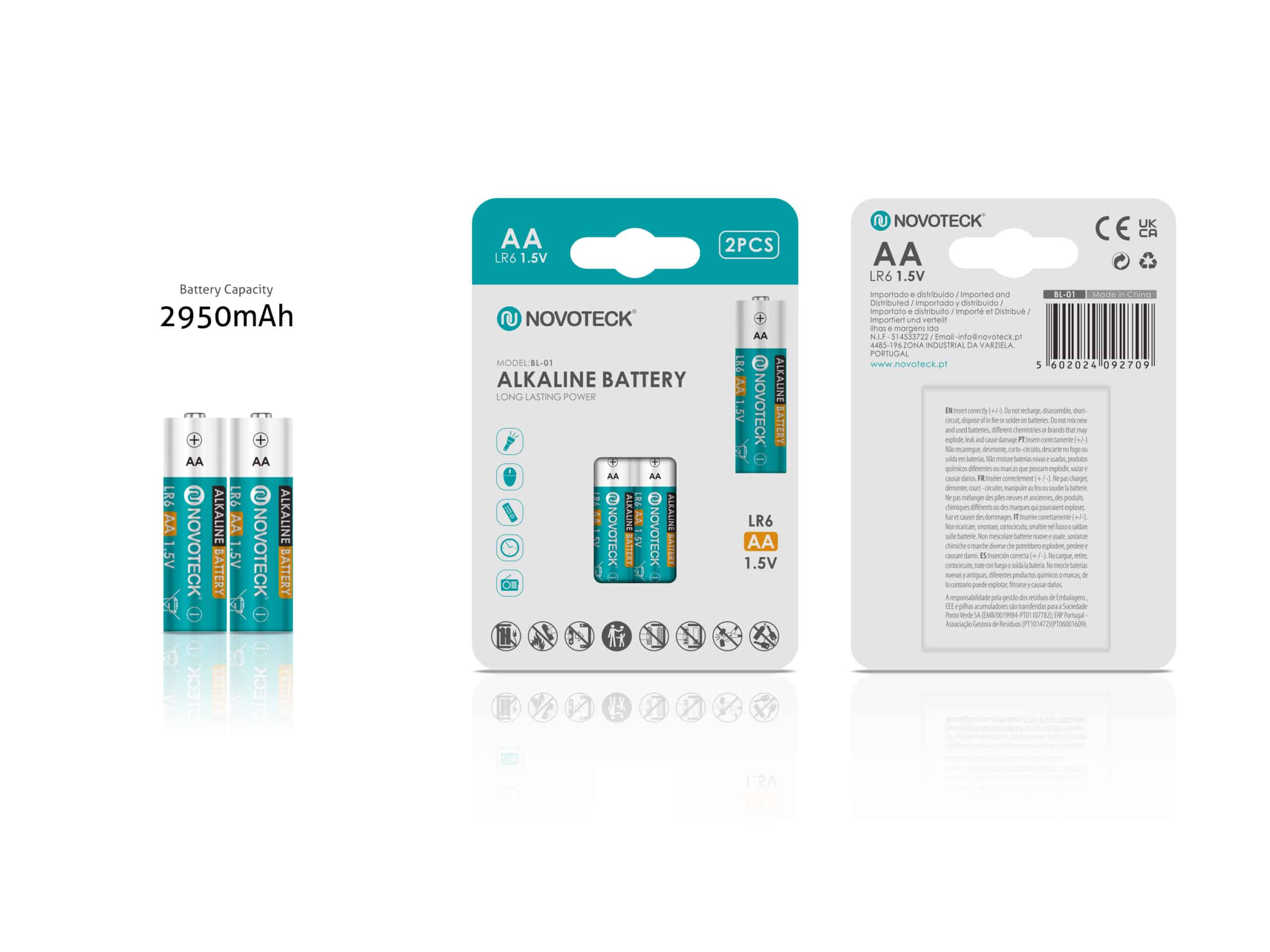 As pilhas alcalinas AA NOVOTECK LR6 1,5V foram desenvolvidas para garantir desempenho estável, longa duração e elevada fiabilidade em múltiplos equipamentos eletrónicos. Com 2950mAh de capacidade, oferecem uma excelente autonomia para dispositivos de utilização frequente, tanto em casa como no escritório.